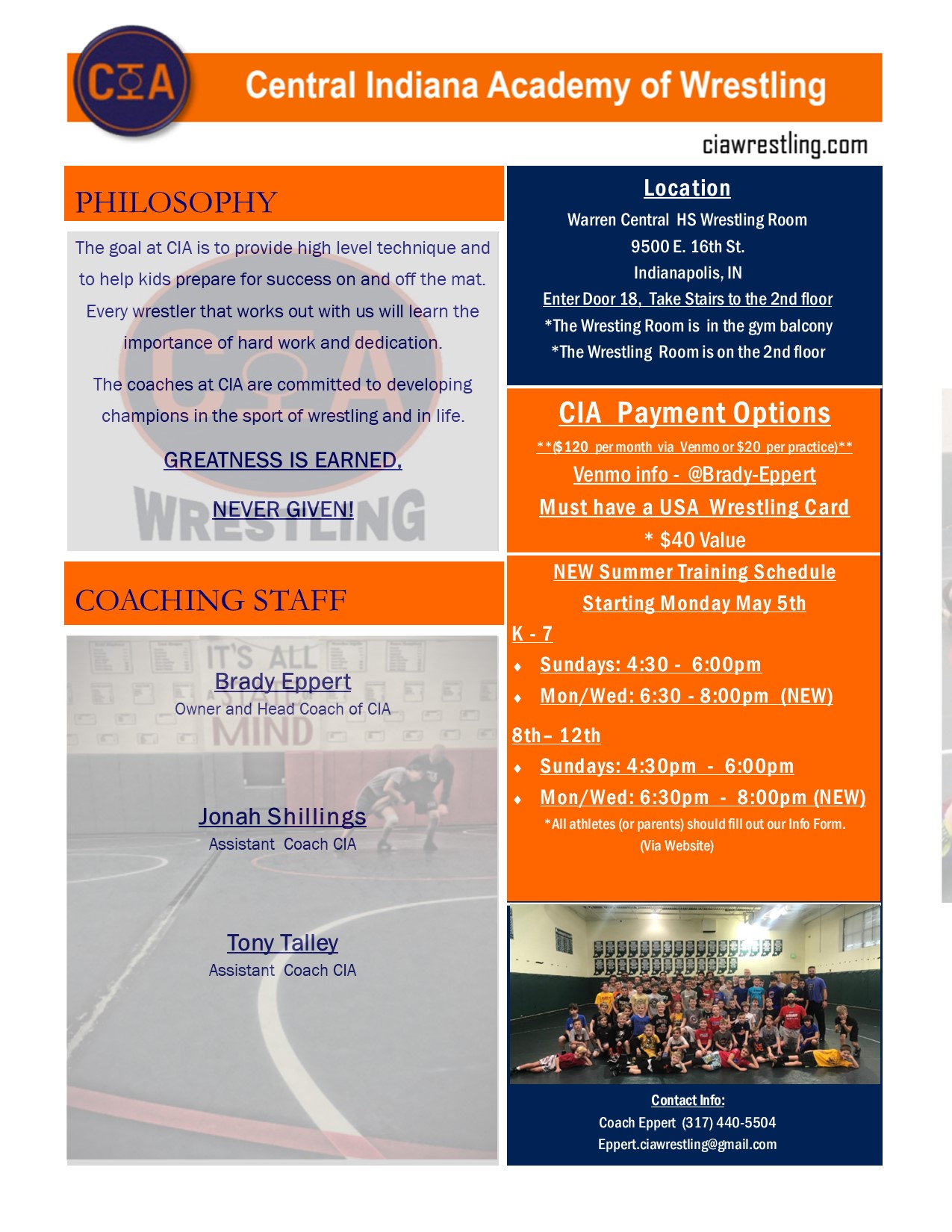 CIA Coaching Staff